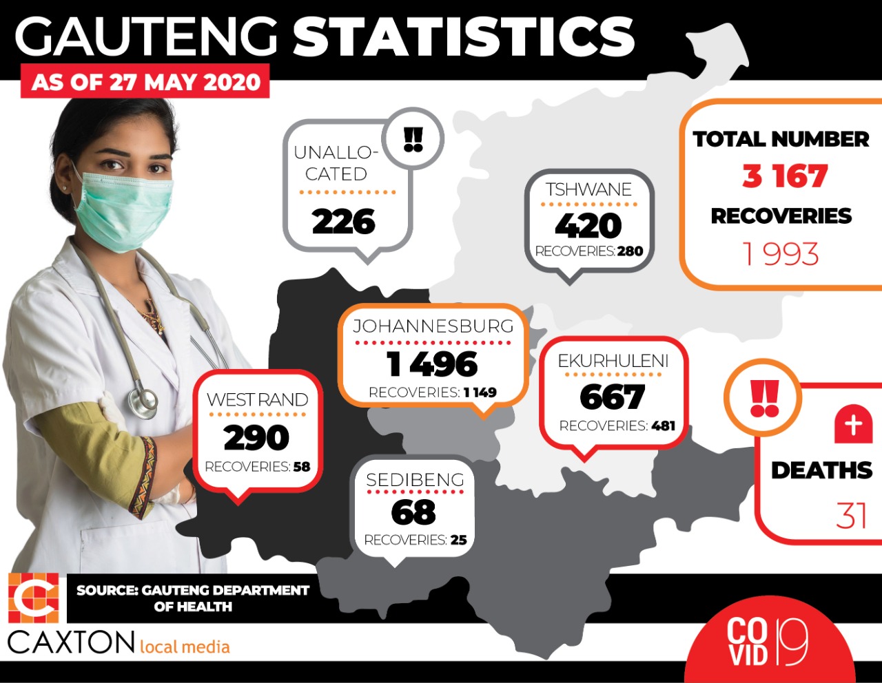 Gauteng Covid-19 cases climb to 3 167