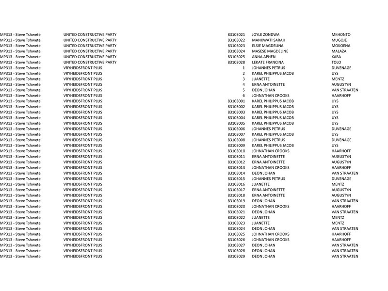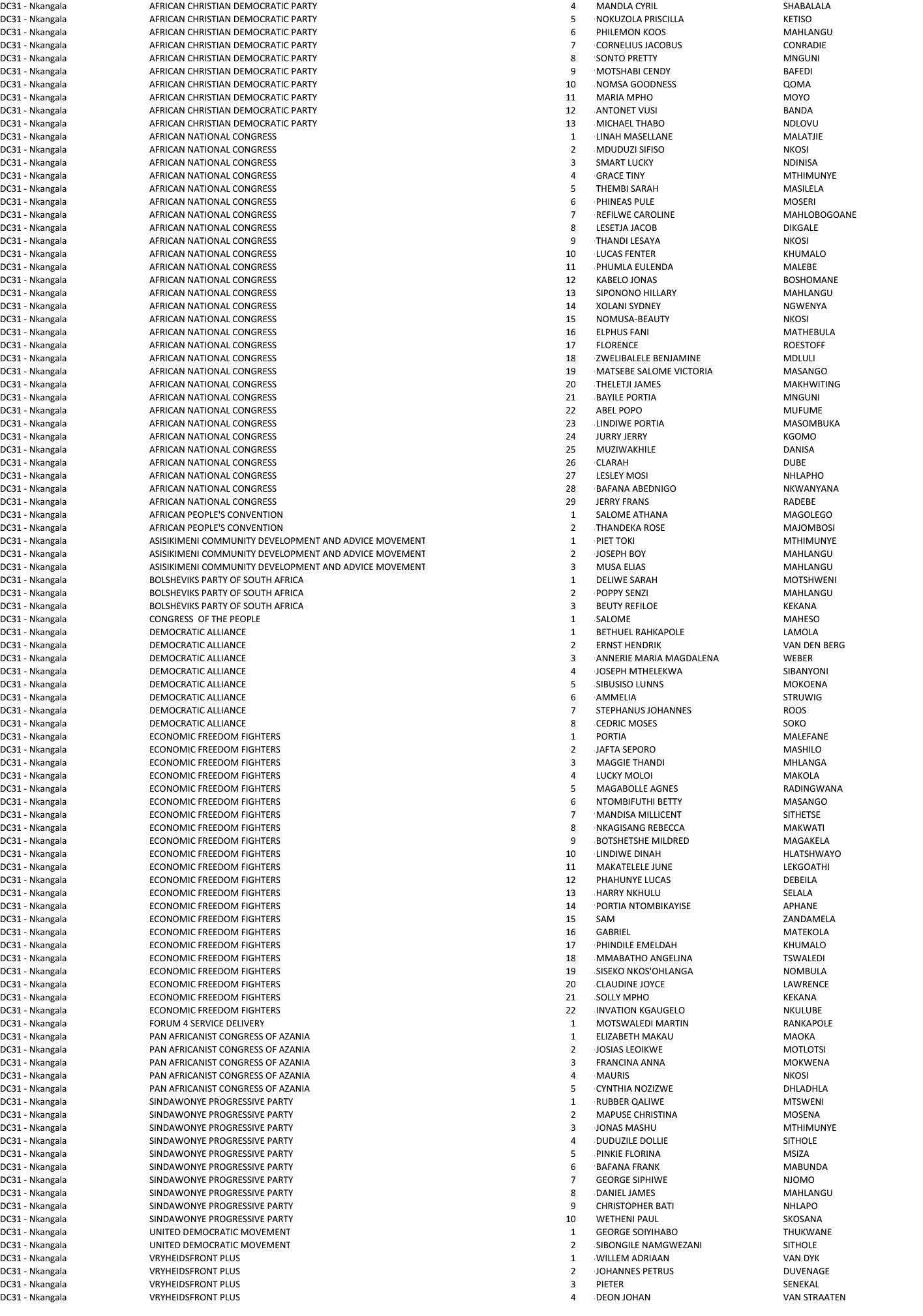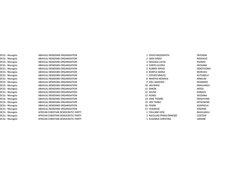 Completing the list for the Nkangala contenders are the ANC, DA, VF+, ACDP, Cope and the EFF.