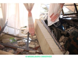 ’n Voertuig het Sondag deur ’n sitkamermuur in SADCstraat op Middelburg gebars.