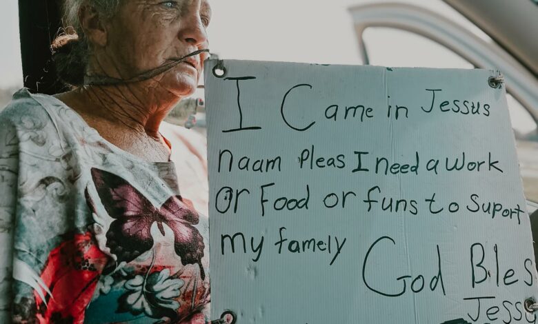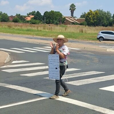 Haar man, Henry, laai haar elke oggend op die Midwater Engen hoek af en daar staan sy tot net so voor vier in die middag, met ’n plakkaat wat smeek: