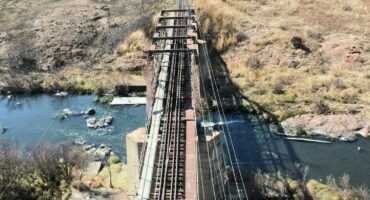 Pa spring met dogtertjie van brug toe trein aankom