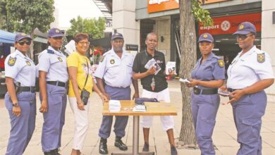 CrimeWarrant Officer Rama Trevor of the Sandton Police Station visits Woodmead Retail Park with his team to promote the awareness…