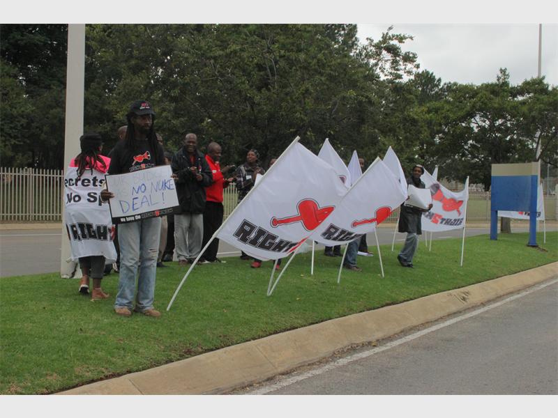 Local newsSUNNINGHILL – Right 2 Know campaigners protested outside Eskom offices in Megawatt Park against the R1 trillion nuclear deal.