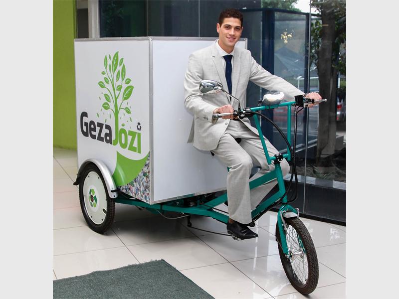 Local Killarney resident, Gabriel Ally of GezaJozi won R300 000 for his Recycle e-Trike – a 500W electrically-assisted tricycle. It is designed to double the output of trolley recyclers and improve their safety on the road. It can transport 150kg of recyclable waste over a distance of 50km.