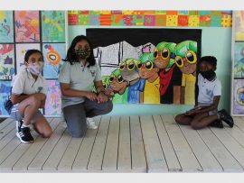 “Ms Kurten knows a lot about art. She made this portrait and asked if we could help her, so we did the painting. The picture is a boy hiding under a train house, kind of. It is inspired by the Grade 3s, art and just going free with art because art is just great, it’s kind of like maths, it’s easy,” said Phaswana.
