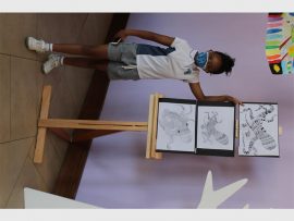 Fezeka Mpela shared her artwork, an octopus in tribal sketches. She said that her art was inspired by her teacher who helped her. “We did an art feature which our teacher showed us. It took three days to make and it was a lot of work to do it. I had to put in a lot of effort,” said Mpela.