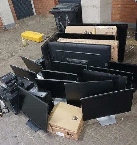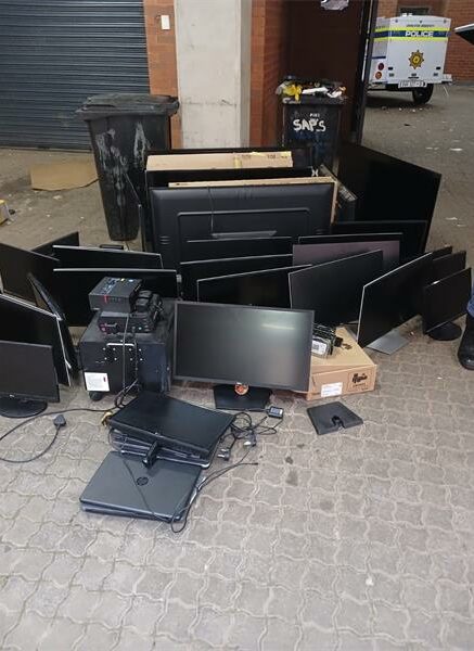 During the search, officers recovered 23 plasma televisions, 21 laptops, 27 computer monitors, and three solar batteries. “The suspects could not provide proof of ownership of the items and were subsequently arrested for possession of suspected stolen property.”