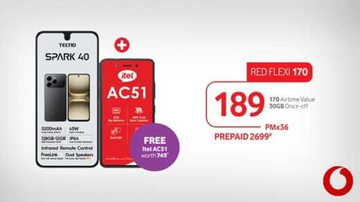 Buy the Tecno Spark 40 on a RED Flexi 170 for R189 per month x 36 months, and get a free itel AC51.