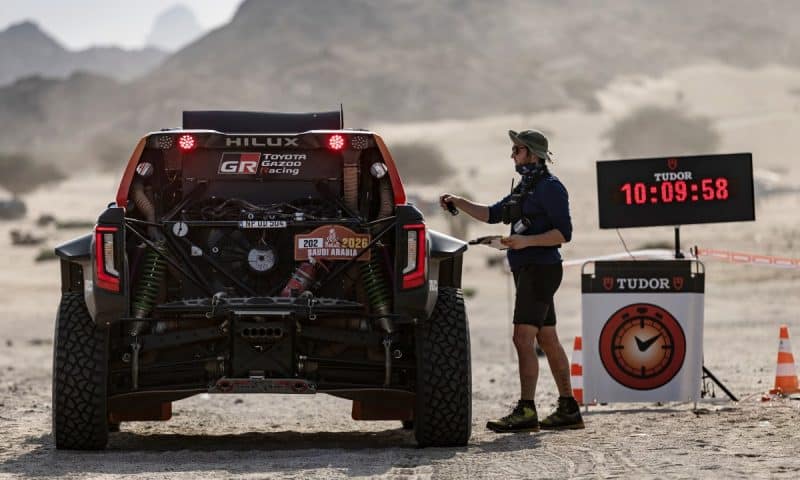 Toyota Gazoo Racing South Africa’s Joao Ferreira was quickest to the day’s first checkpoints, at 38 km and 78 km, with the Dacia Sandrider of Al-Attiyah right behind and followed by the Toyota Gazoo Racing W2RC Hiluxes of Lategan and Seth Quintero, while Michal Goczał’s Energylandia Hilux was ahead of Sébastien Loeb’s Dacia Sandrider.