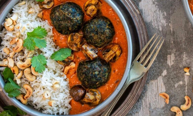 Mushroom and spinach koftas in creamy curry sauce