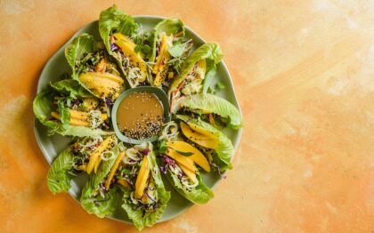 Mango and coleslaw lettuce boats with sesame dressing
