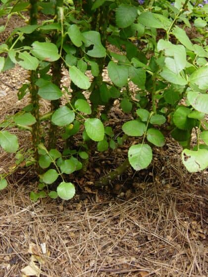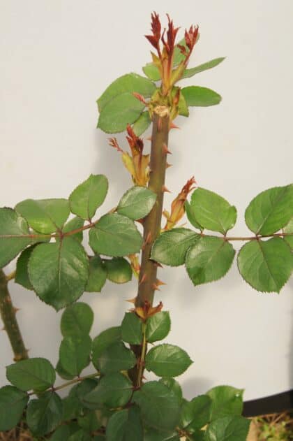 Dark green leaves are the sign of a healthy rose bush that isn’t shy to flower. The monthly dose of rose fertiliser per bush is very important to replace the nutrition that the rose draws up. A 25g application of Vigorosa once a month, from September to April, is all that’s necessary for a rose bush and twice that amount for a large shrub rose.