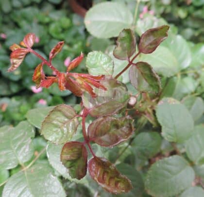 Aphids and thrips, a tiny invisible insect, can deform the leaves by sucking the sap out of them. Regular spraying with Ludwig’s Insect Spray will keep them away. Combining the fungicide and insect spray deals with both problems at the same time.