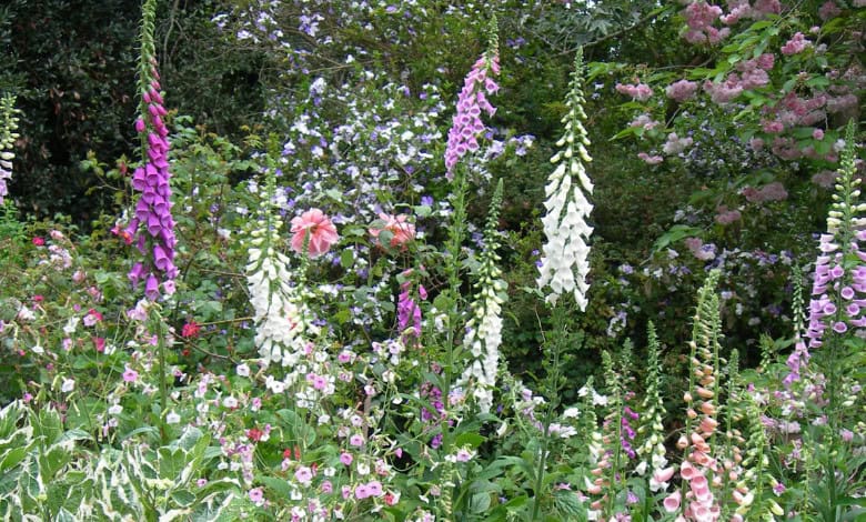 - Foxglove ‘Excelsior Mixed’ is an easy to grow perennial for partial shade. Plants grow up to 1m high and should be spaced 25cm apart. Be aware, however, that all parts of the plants are very poisonous to dogs, cats, and even young children.