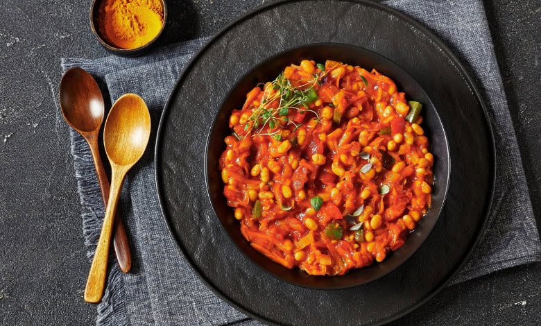 - Stir in the tinned baked beans in tomato sauce and simmer until the texture and seasoning feels right.