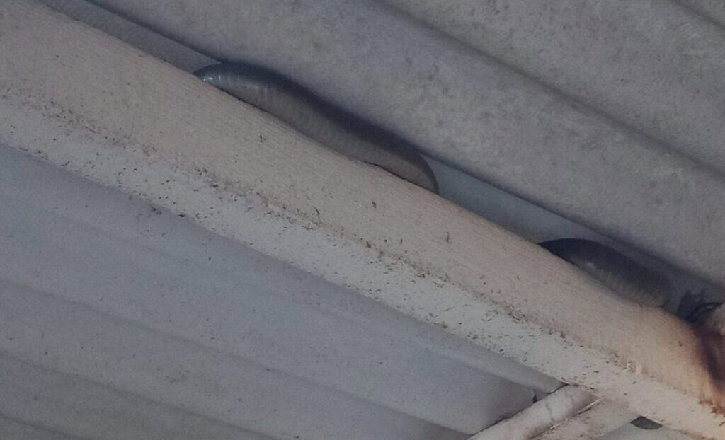 There it was, coiled on the roof beam.