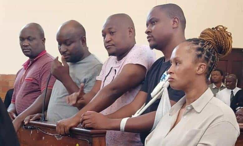 Highvelder News reports the suspects, including former police official Mthobisi Nkosi (40), Aubrey Xaba (35), Skhumbuzo Skhakhane (40), Nyiko Mujovo (30), and Valencia Skhosana (36), were remanded in custody.
