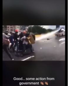 A video shared on Facebook, TikTok and Twitter shows protestors fleeing as police fire tear gas and water cannons. A number of people are blasted off their feet by the force of the water.