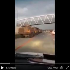 The video of military vehicles on the freeway is not from the current unrest but from more than a year ago.