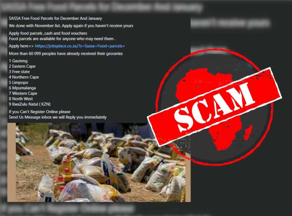 Fact-checked: Sassa is not offering “free food parcels for December and January” through social media or dodgy links.