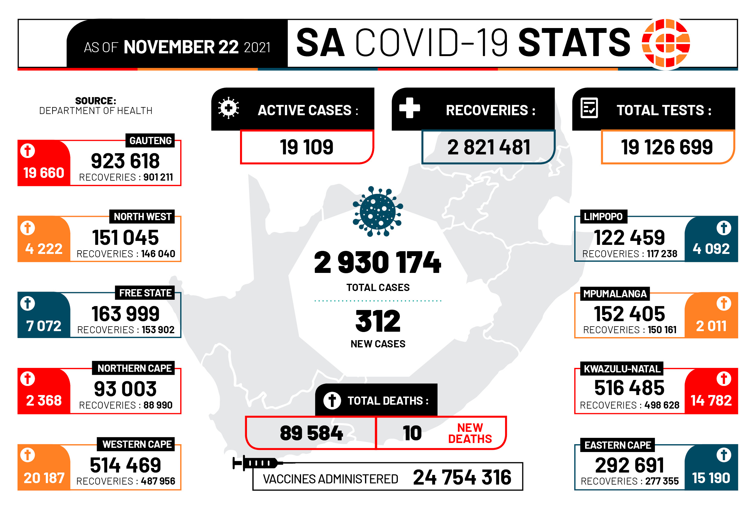 Tshwane has recorded 1 689 active cases as of Sunday, November 21.