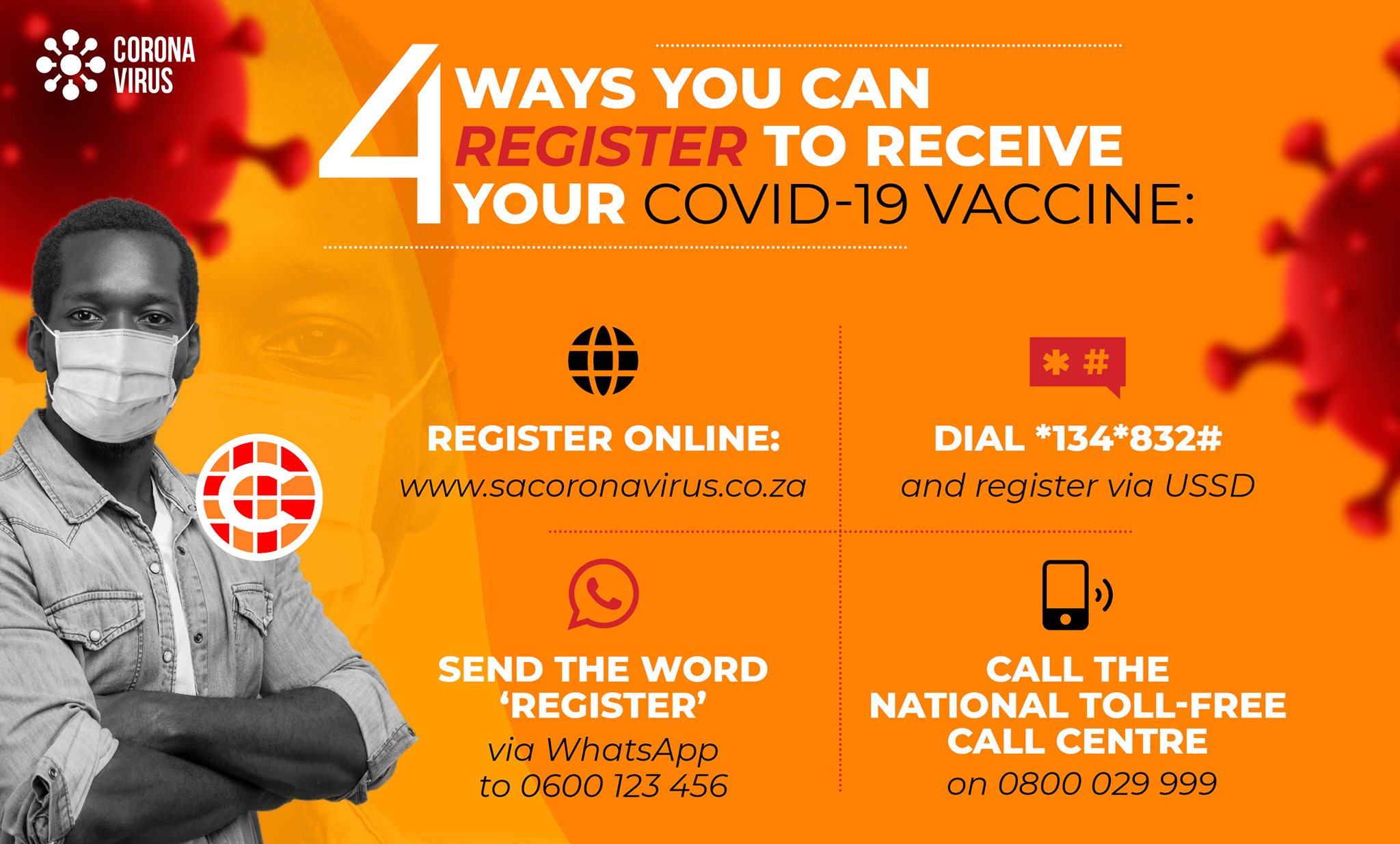Members of the public who are over 60 years of age can choose to register via different channels, depending on their access to these channels: