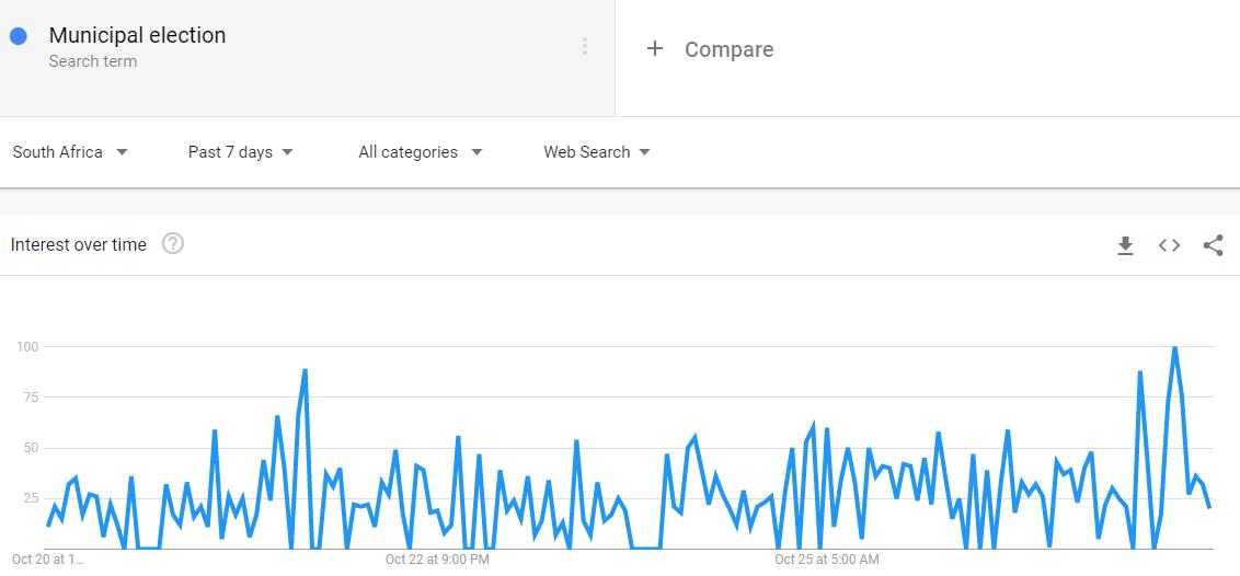 South Africa is just days away from the November 1 local government elections and Google search activity shows that interest in the sixth municipal election since 1994, has reached an all-time high.