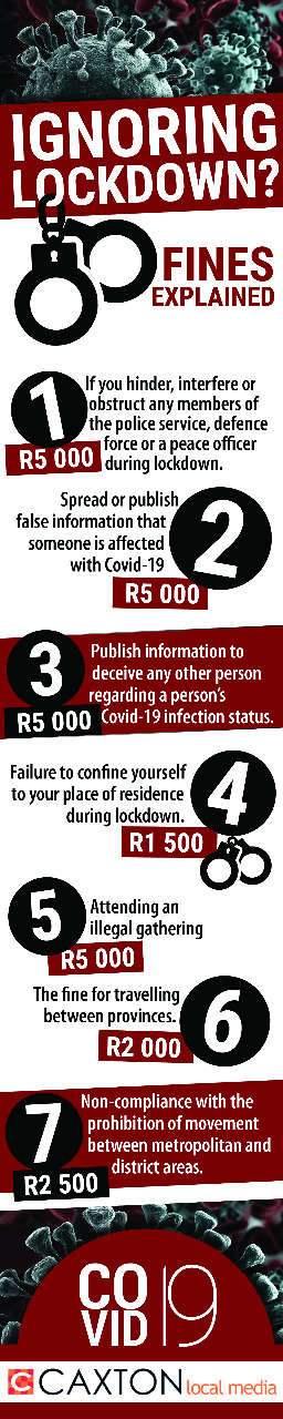 The Determination of Admission of Guilt Fines in respect of offences in terms of the Disaster Management Act 2002 (Act 57 of 2002) Regulations 2020’s lockdown regulations were signed into effect on Monday and apply to the whole country.