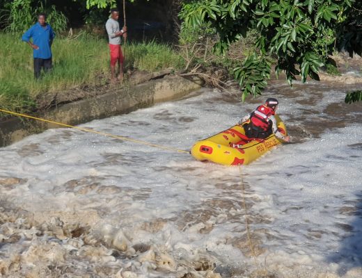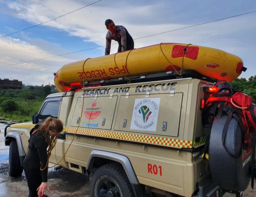 Paramedics and SAPS K9 Search and Rescue are on scene at the Nonoti river in Darnall searching for the missing child, however severe weather conditions and lightning have made the search too perilous.