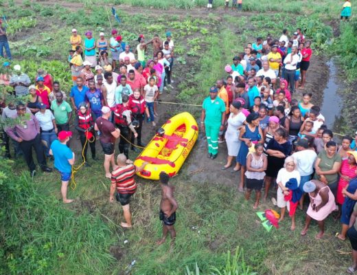 Search and rescue members preparing to search the Nonoti River.