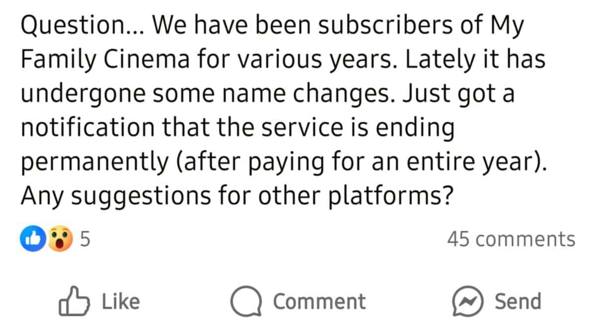 South Africans have taken to social media to voice their frustration after popular streaming site My Family Cinema – also known under names such as Vela and Konex Cinema – announced it is shutting down.