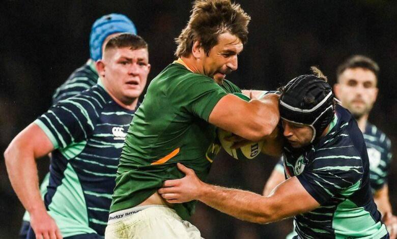 Despite at least one of Ireland’s two tries appearing to come from a forward pass in the build-up, Kolisi refused to blame the match officials for the defeat, although he said when he asked the referees about the build-up to Mack Hansen’s try, they were happy that there was no forward pass.