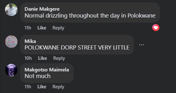 Further north, Polokwane Review readers mentioned receiving little rain in Limpopo’s capital.
