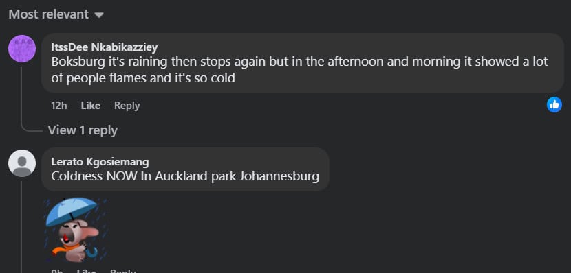ItssDee Nkabikazziey commented on Boksburg Advertiser‘s post that it was raining the whole day. That coincides with a post by @TrafficSA on X that showed a flooded road in the area.