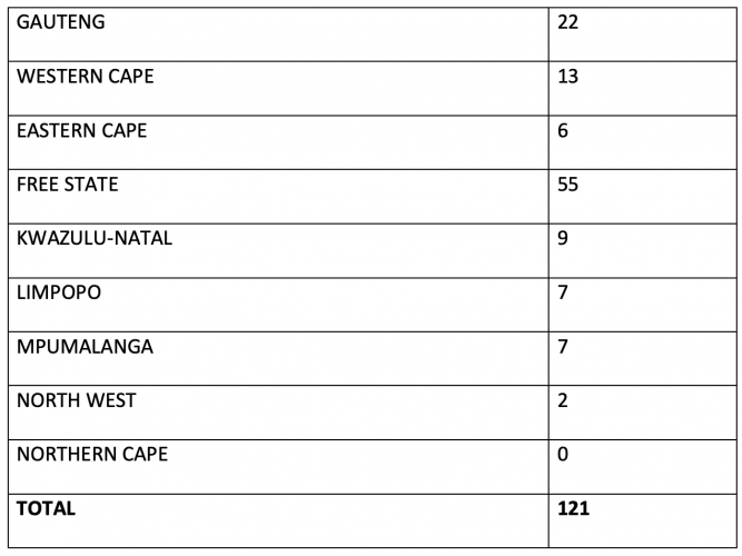 The minister provided a breakdown of which provinces the 121 people came from.