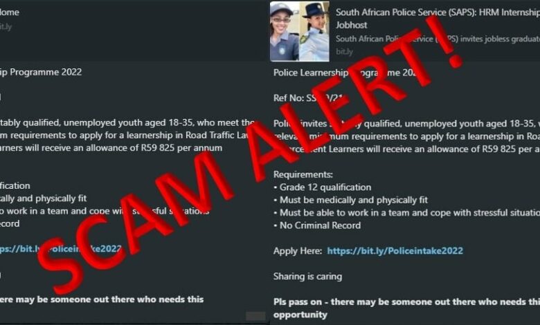 The South African Police Services (SAPS) has warned that a scam message, advertising vacancies within the police force, is being shared across various social media platforms.