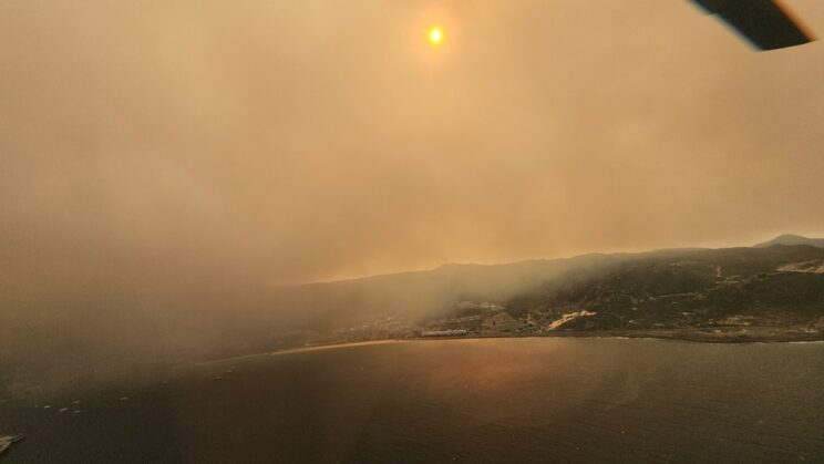 Helicopters, fiery orange flames, thick smoke. The #Simonstown #wildfire is still raging – but the @CityofCT firefighters are amazing. pic.twitter.com/afF63u31Cd