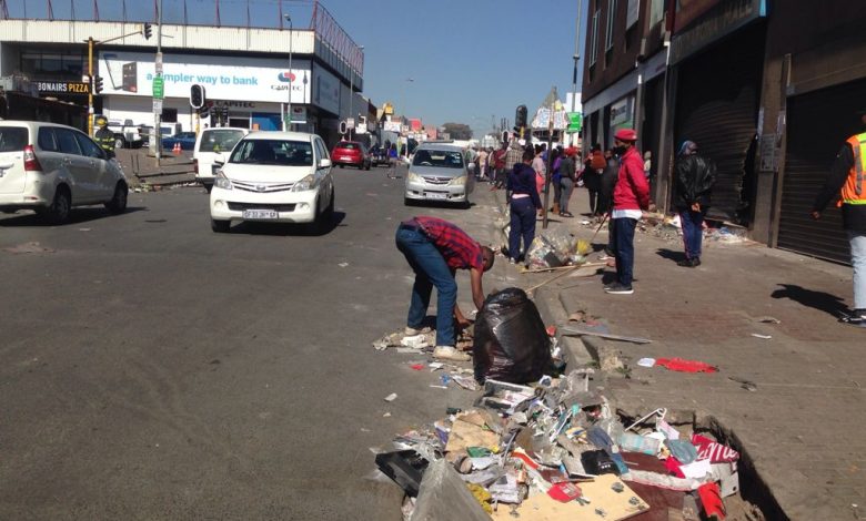 Clean-up efforts have begun around the streets of Pan Africa Shopping Centre which was looted over the past couple of days, yet some continue to loot.