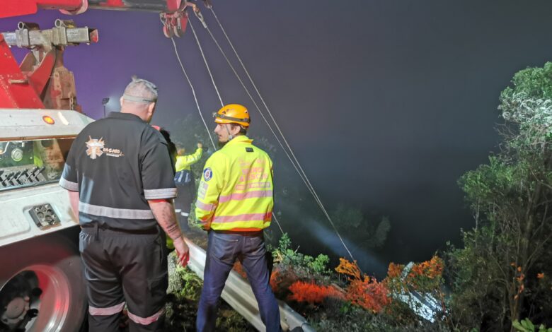 Emer-G-Med’s Martin Jeffrey says that had it not been for the thick bushes and trees down the steep embankment, the bus would have likely rolled much further than just 15m or 20m.