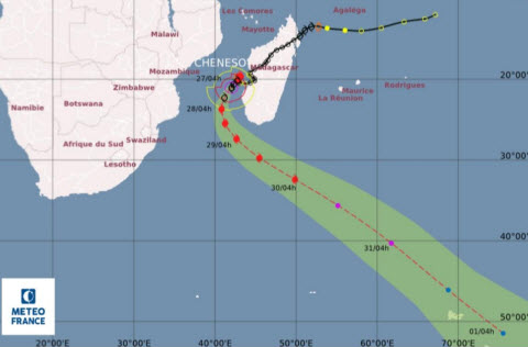 Cheneso has been making its way across the Indian Ocean since last Friday, first making landfall on Madagascar and causing 16 deaths in the island country.