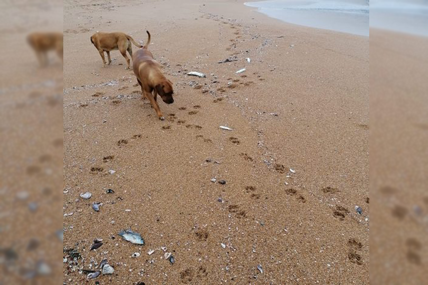 Ballito resident Tony Perkins was walking his 2 dogs along the beach on Friday morning when he came across a number of dead fish scattered along the bank at the Tongaat river mouth.