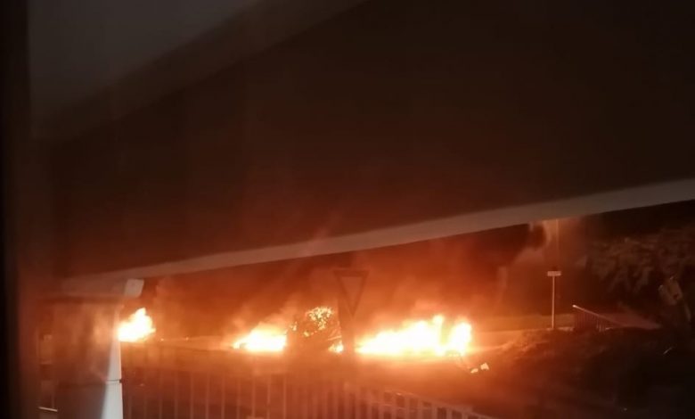 The N2, southbound just before the M7, is also believed to be blocked by protesters who are burning debris on the roadway.