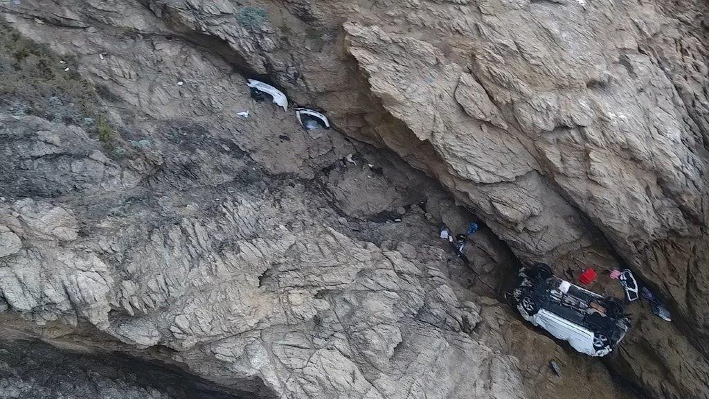 An eyewitness who was walking his dog with his granddaughter on Saturday afternoon, said that they heard what sounded like two shots being fired before the vehicle crashed down the cliff.