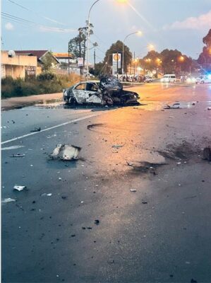 It is alleged that the criminals arrived in a silver Honda Civic and opened fire on the guards. A white Mercedes-Benz believed to have been used by the suspects was found burnt and abandoned at the scene.