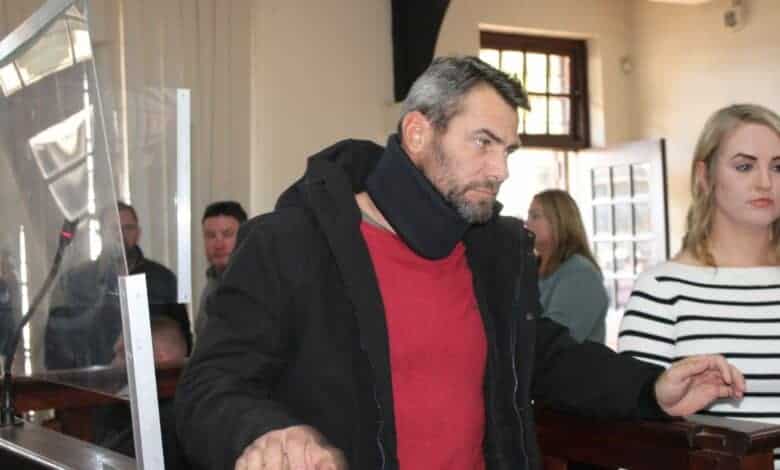 Marco Schalekamp briefly appeared in the White River Magistrate’s Court today, neatly dressed in a buttoned shirt and trousers, his neck cast removed.