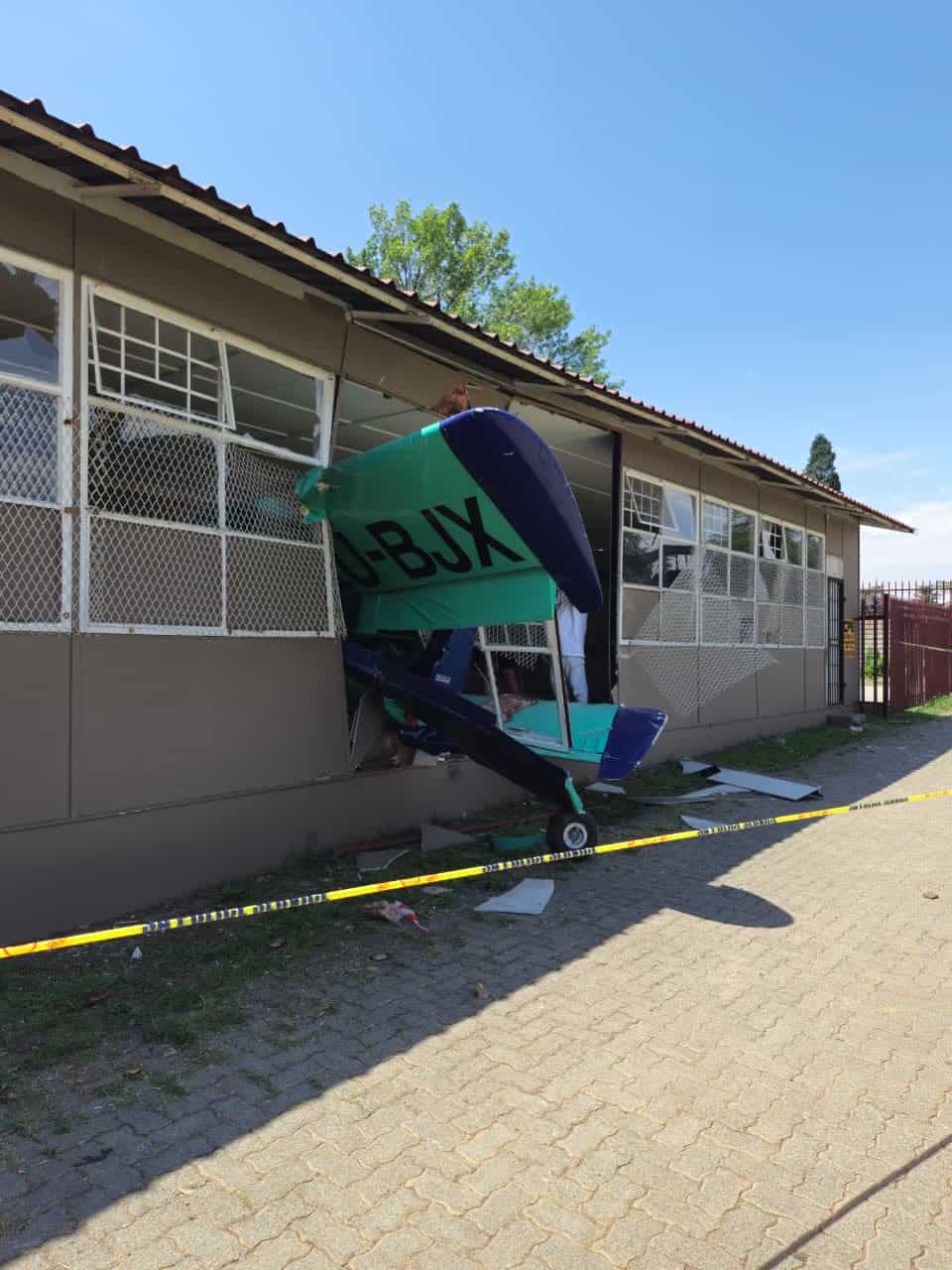 The light aircraft made an emergency landing on the rugby field at Hoërskool Alberton and crashed into the school’s tuckshop on Sunday morning, 26 October 2025.