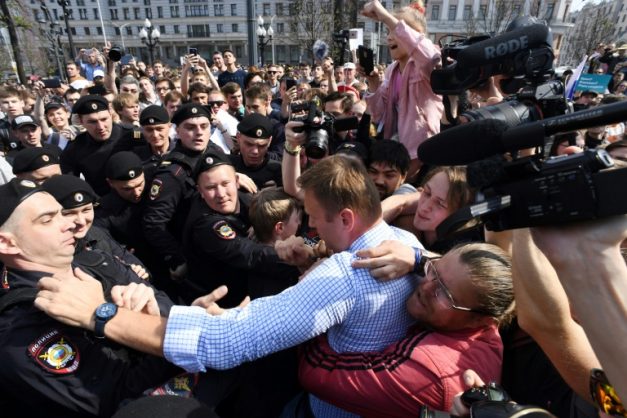 The 41-year-old protest leader was detained along with a number of his supporters as a huge crowd packed a central square in Moscow to protest Putin’s swearing ceremony on Monday.