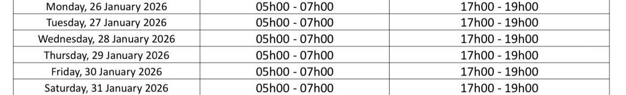 Load reduction schedule: Tuesday, 27 January – Saturday, 31 January