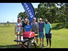 The braais were burning hot and fast in the Hirsch Weber braai corner at Sugar Rush Park. From left, Bradford Wills, Shane Spencer, Engela Delport Alan Wills, Graham Martin and Eugene Hlongwa all took a turn with the tongs to keep the meat coming on Saturday.