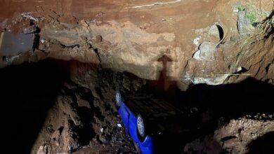 Car plunges into gaping hole on the M4 at Desainager